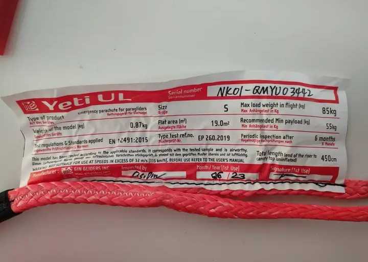Annonce n°8572 : Parachute secours Gin Yeti UL taille S - Accessoire Gin Yeti