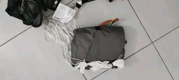 Parachute de secours Dudek Globe Light 110 avec front container - ptv max 110kg - poids 1,5kg Je m'en suis jamais servi, replié régulièrement. Dort au fond de mon placard depuis 1 ans et demi. Je peux l'envoyer