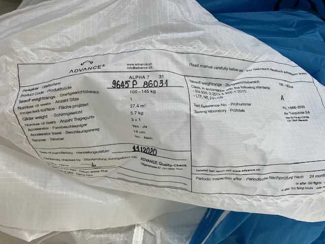 Annonce n°6282 : Vend Advance Alpha 7 31 PTV 100-130 - Parapente Advance Alpha 7