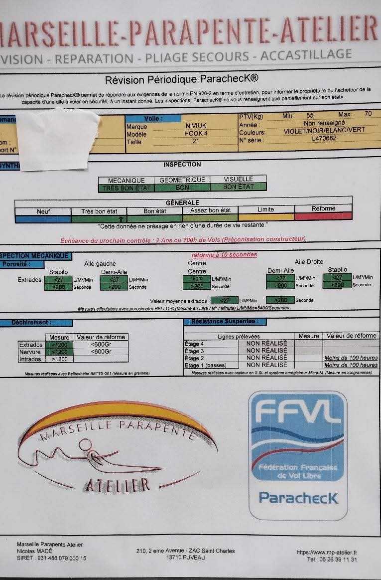 Suite á l arrêt de l' activité je mets en vente mon pack parapente Hook4 taille 21 constitué : -Voile En B Hook 4 taille 21 ,achetée en 2020 PTV (55-70), encore en trés bon état général (voir le rapport complet effectué le 20 janvier 2026 pour la vente). -une sellette réversible light radical 4 marque Supair avec son airbag .(Valeur neuve plus de 800 euros )moins de 50 vols . -Un secours de marque mcc aviation acheté neuf en 2017 .