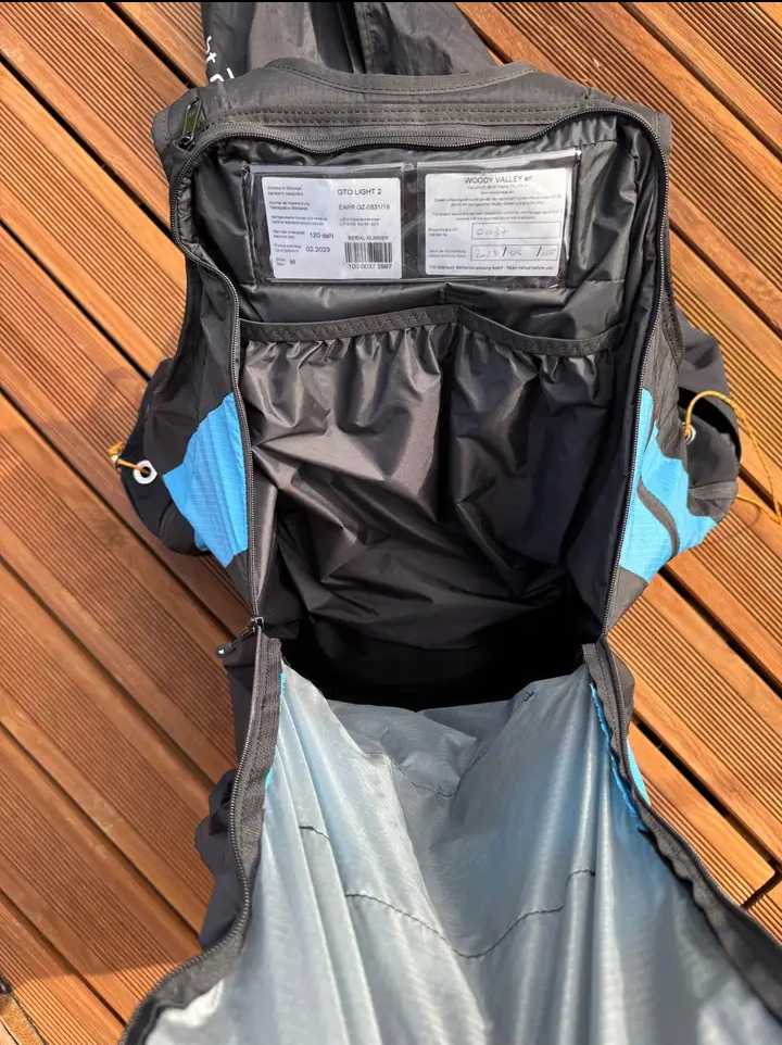 Bonjour Cocon Woody Valley GTO Light 2 Taille M (1m65 à 1m78) Poids: 3,235kg Parfait état: La selette est en parfait état. Elle totalise 75h de vol sur deux ans. Le tissus n’a aucun accro Vendu avec la protection gonflable et l’accélérateur d’origine. Bons vols